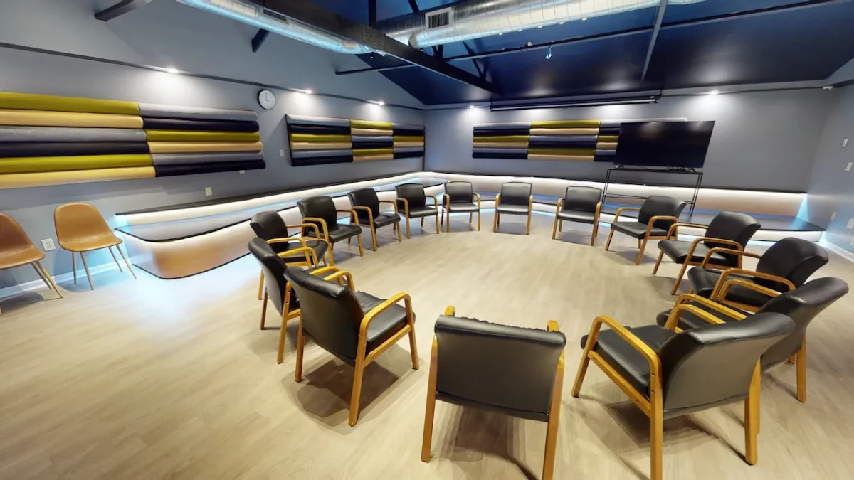 Our Hanover location includes multiple buildings housing detoxification and residential treatment services. The facility offers spacious group therapy rooms, an auditorium for larger gatherings, comfortable common areas, and outdoor spaces for recreation and nature-based programming.